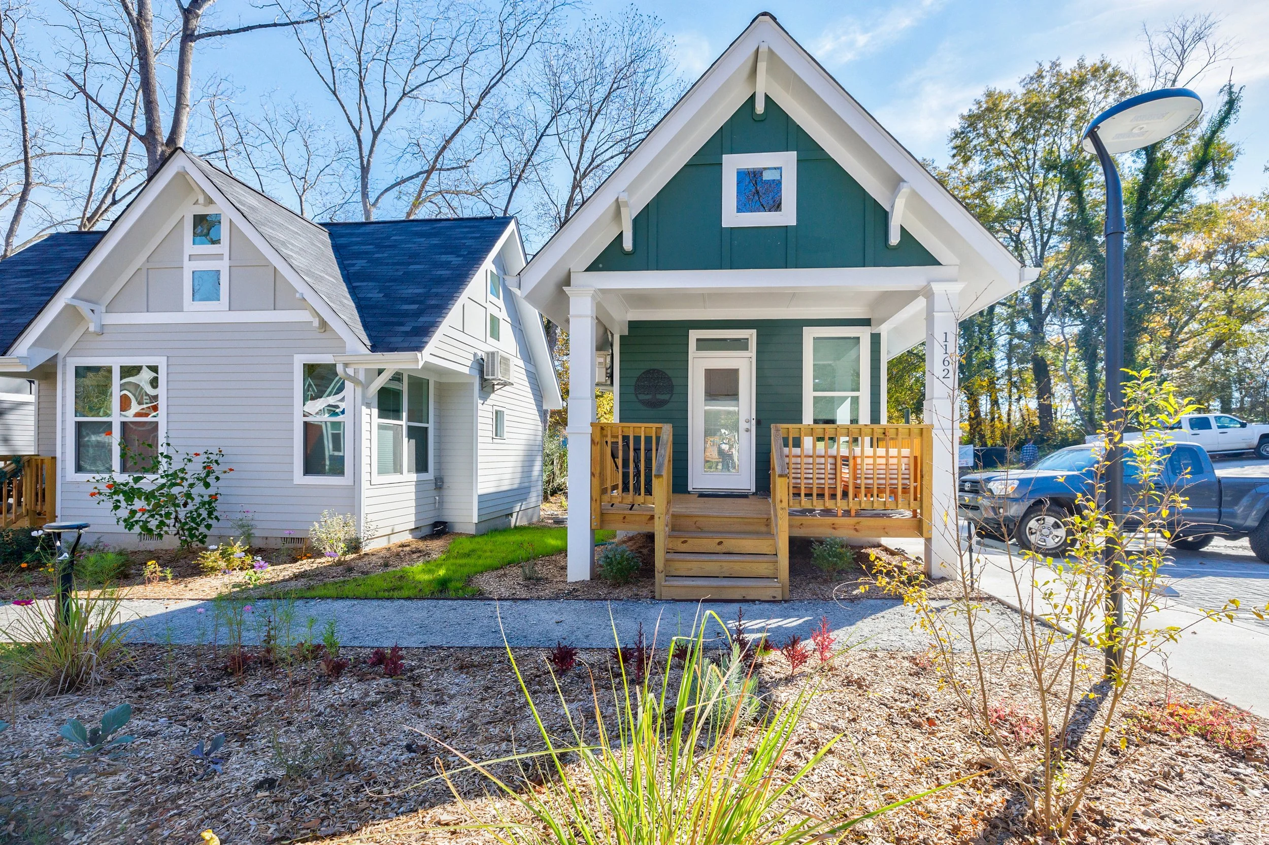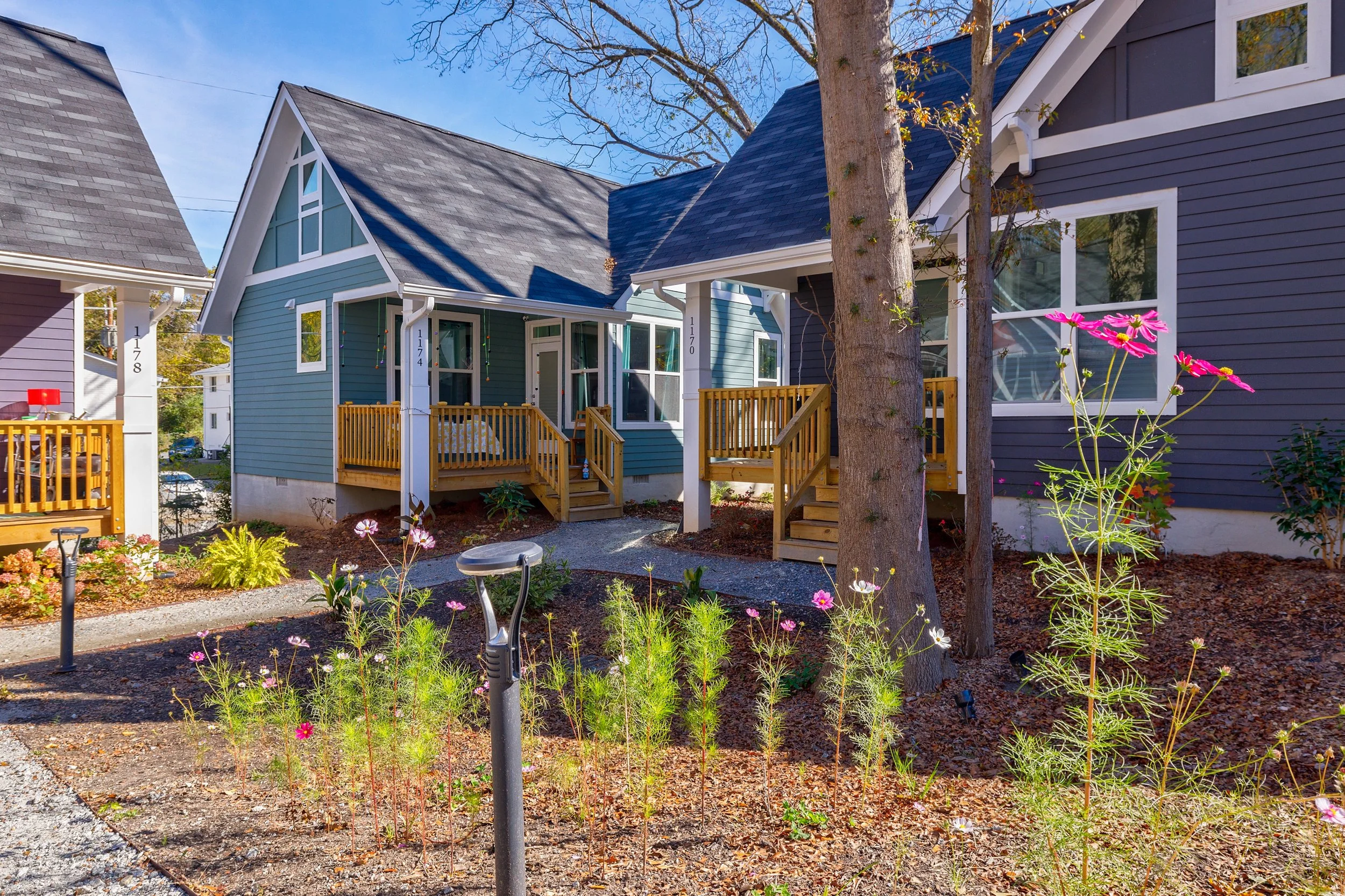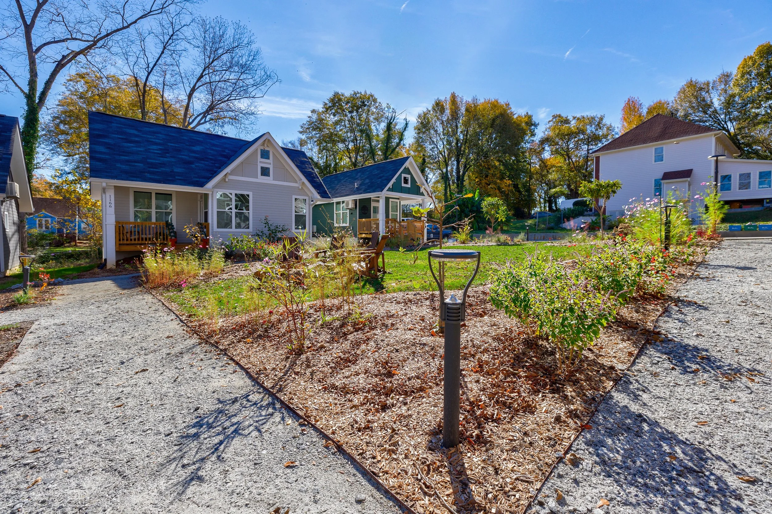 Join MicroLife for a tour of our pilot project, the Cottages on Vaughan. The new pocket neighborhood, situated on a half-acre lot a block away from downtown Clarkston, includes eight micro-cottage homes, a common green space for gathering, and climate-conscious development features such as solar panels and edible, regenerative landscaping.